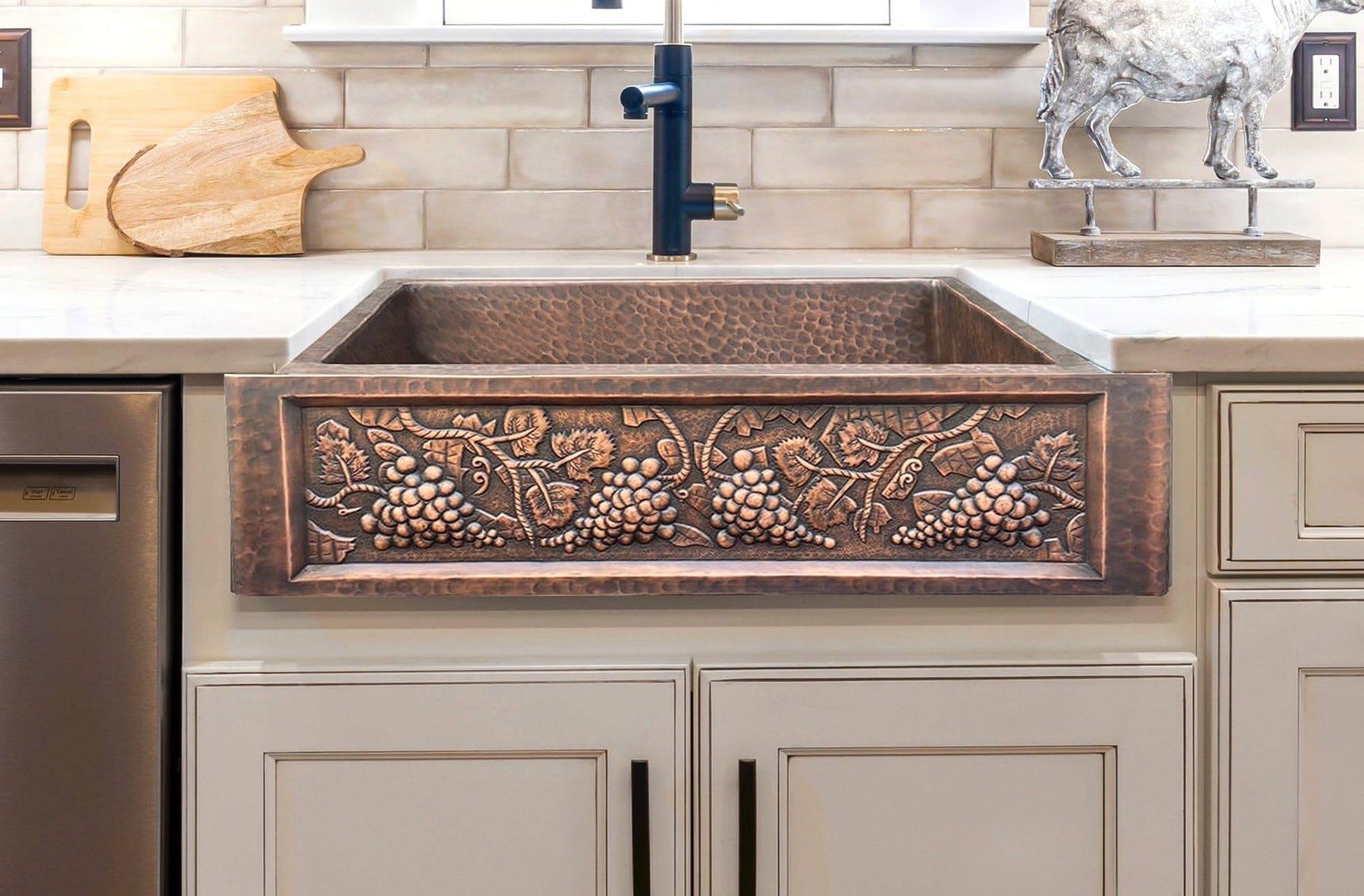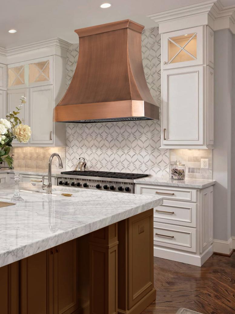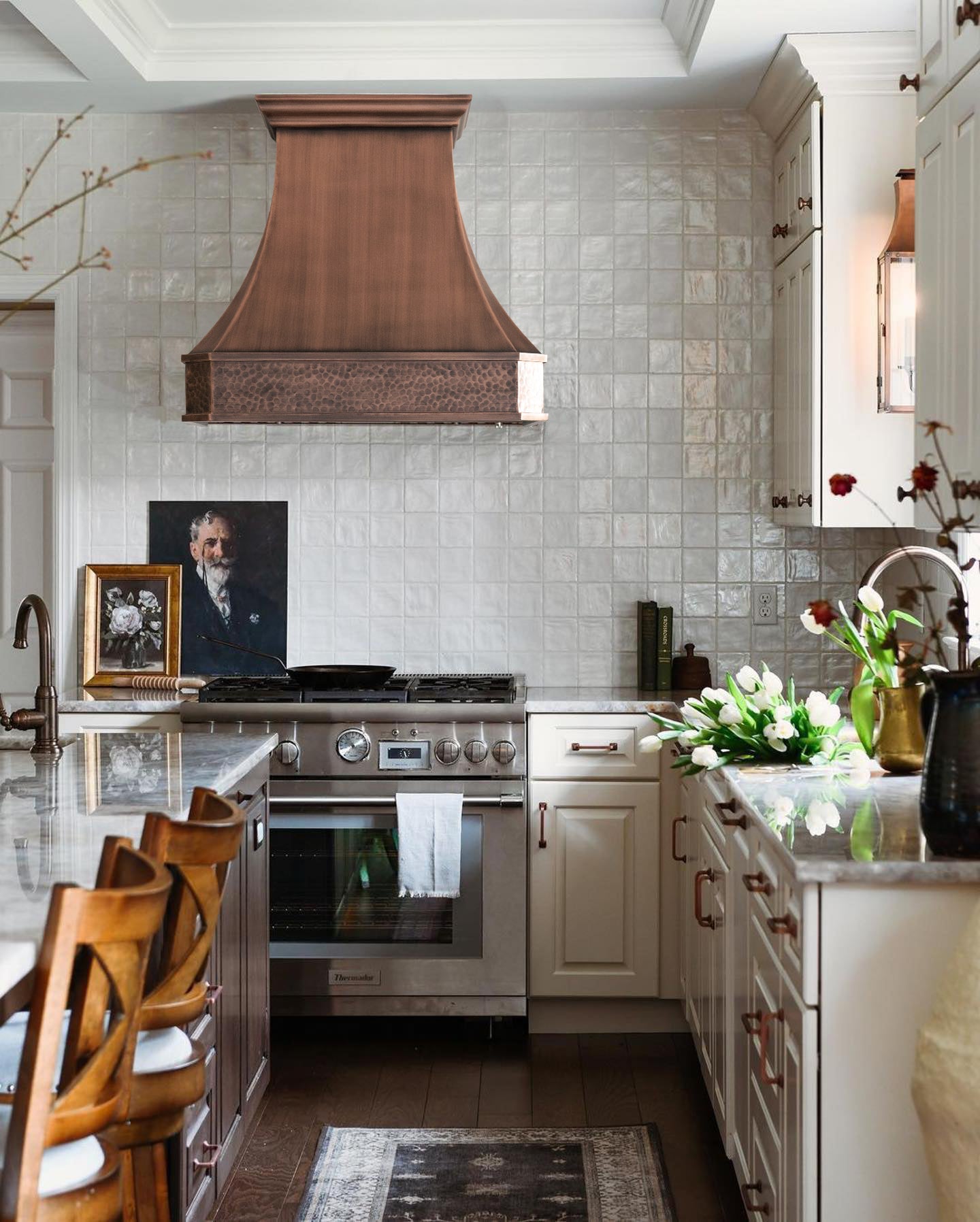 Customize your Copper Range Hood with endless textures and apron designs for farmhouse kitchen