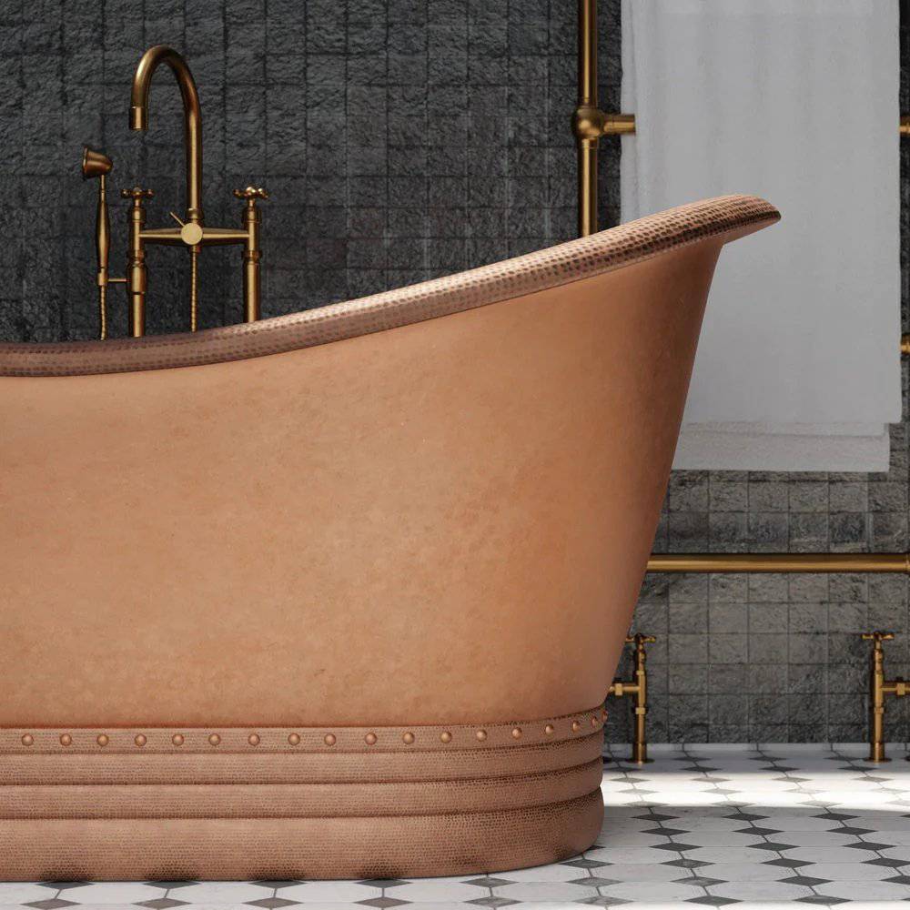 - Protection: Treated with a clear lacquer sealant to provide additional protection. With typical indoor use, the copper bathtub remains resistant to turning patina.