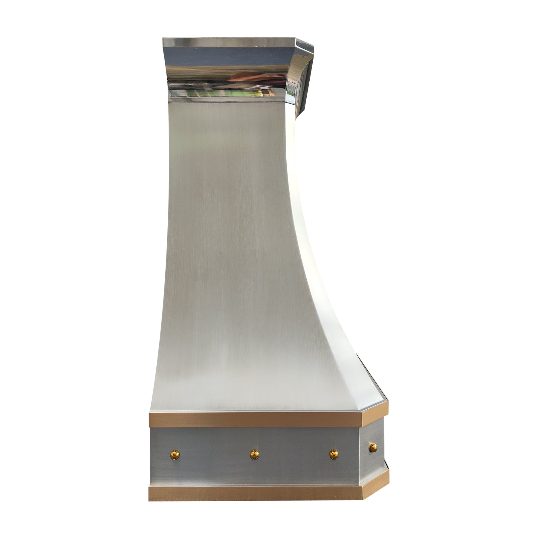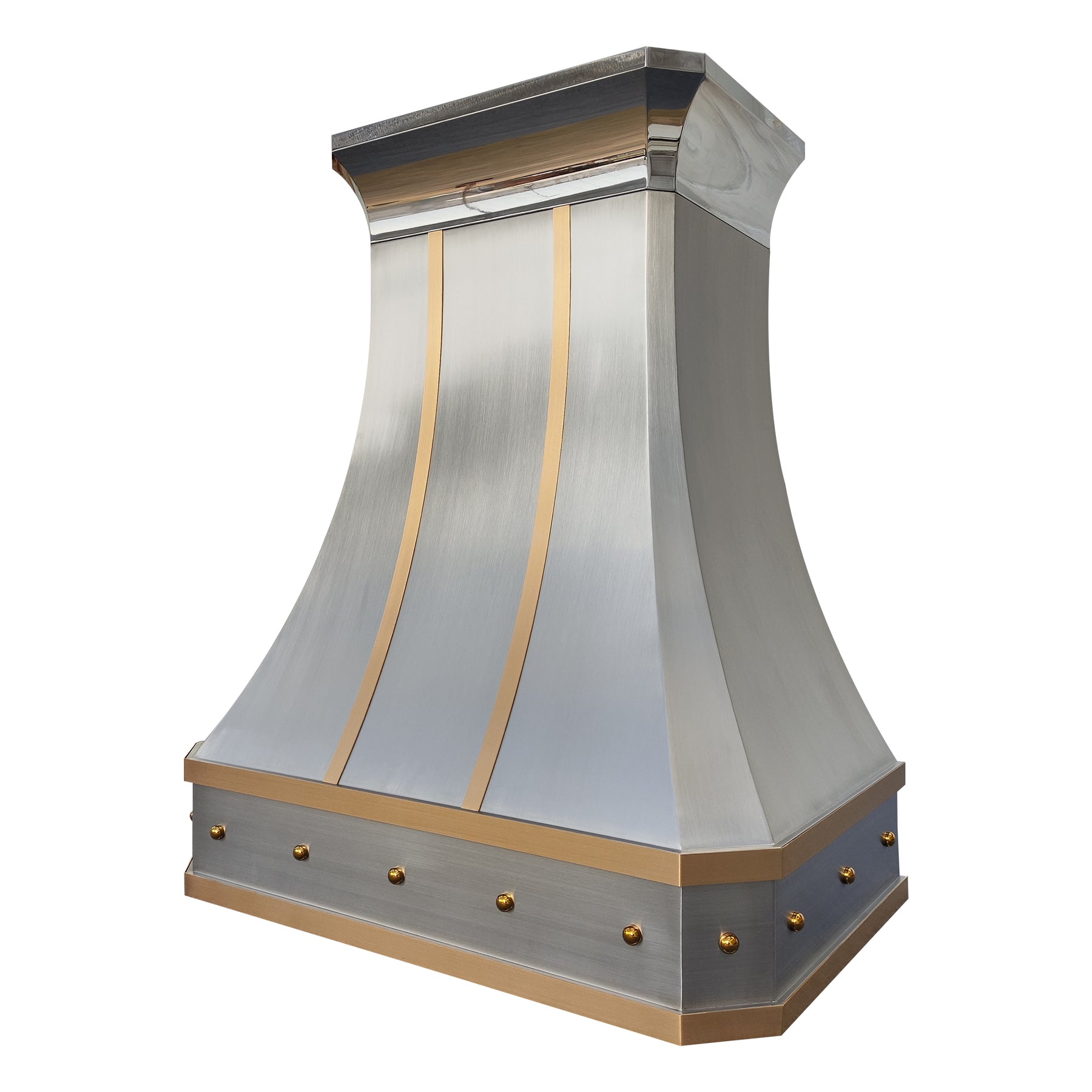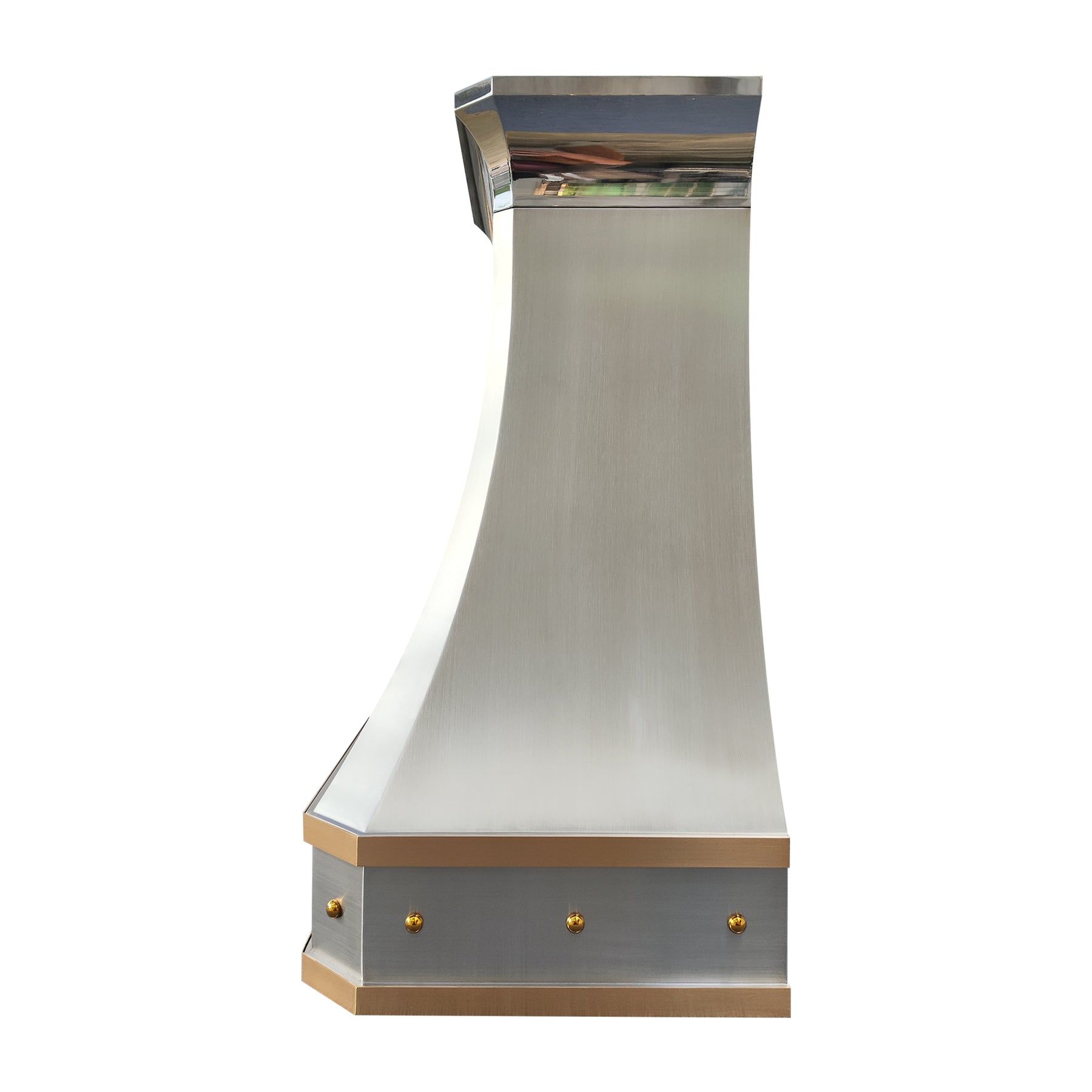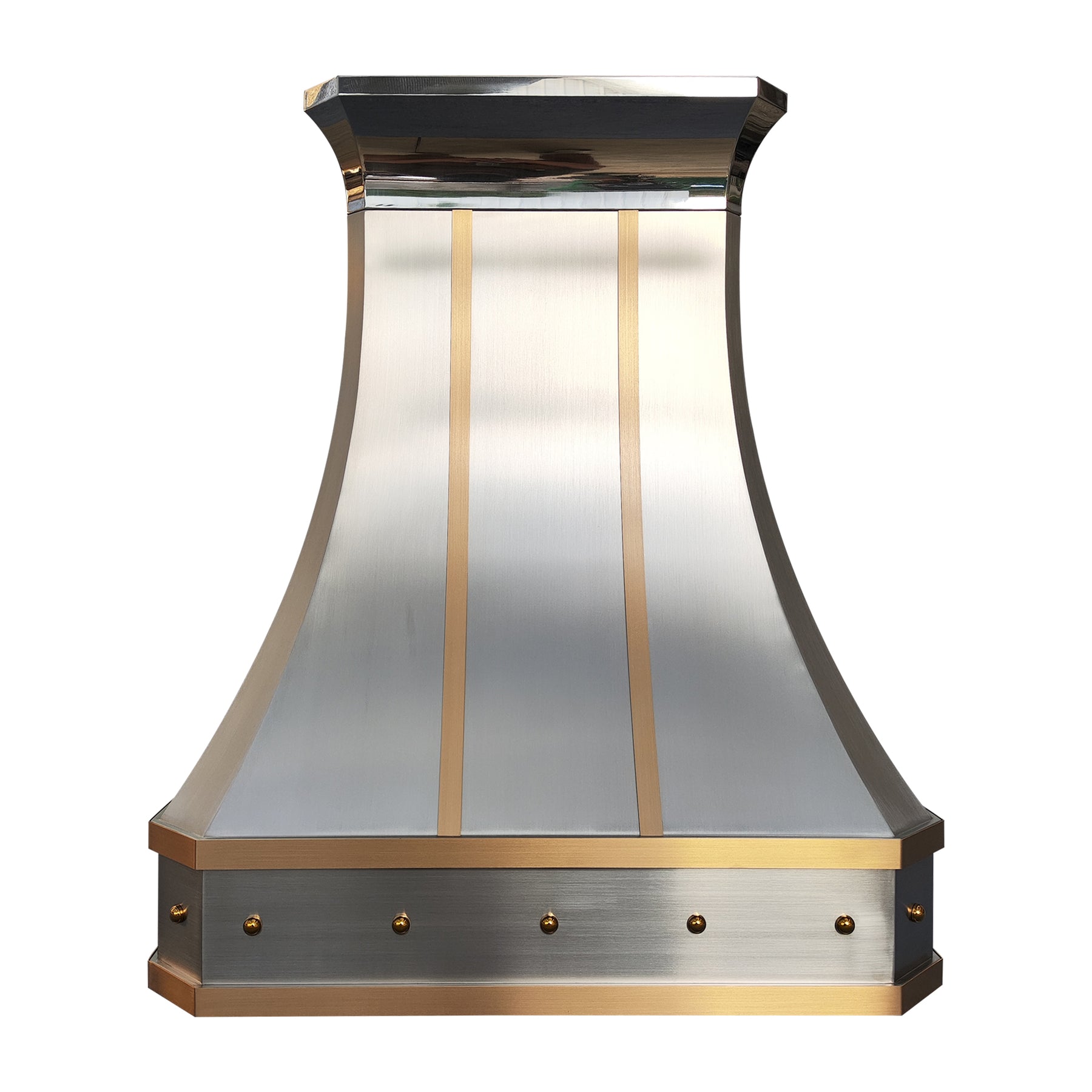 The Fobest FSS-138 is a refined stainless steel range hood that combines graceful curves with a polished crown, delivering a clean yet elegant focal point above your cooktop. Designed for homeowners who value both performance and timeless aesthetics, this custom range hood is enhanced with warm brass straps and rivets, blending seamlessly into traditional, transitional, or contemporary kitchens.