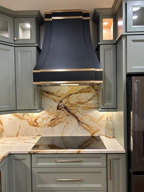 Brass Range Hood: Make a bold and dramatic statement with our luxurious brass range hoods. The rich, golden tones add warmth and sophistication, making them a centerpiece in any high-end kitchen.